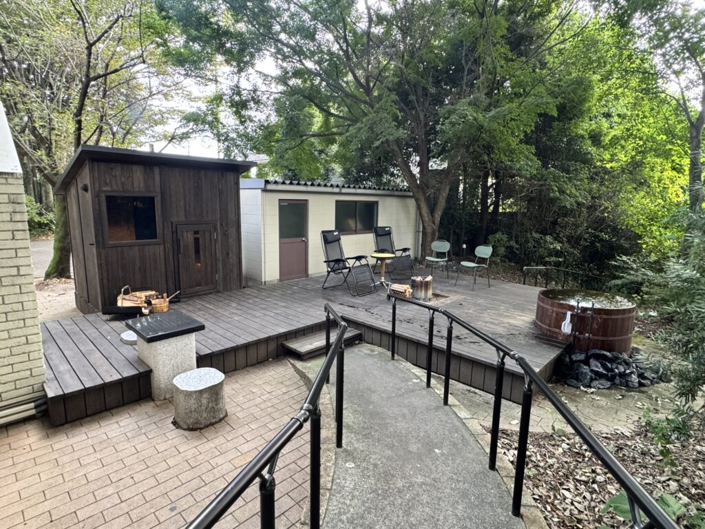 薪を焚べれば、少し肌寒い時期でもぬくぬく快適。目の前には川が流れ、木漏れ日が差し込む中での外気浴はまさに“自然ととのい”。この時間だけで都会の疲れが吹き飛ぶ。
