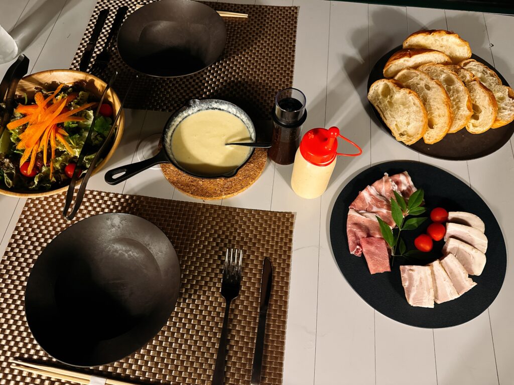 夕食の時間を伝えておけば、支配人の方がその場で焼いて提供してくれる神サービス。もちろん自分たちで焼くこともOK。